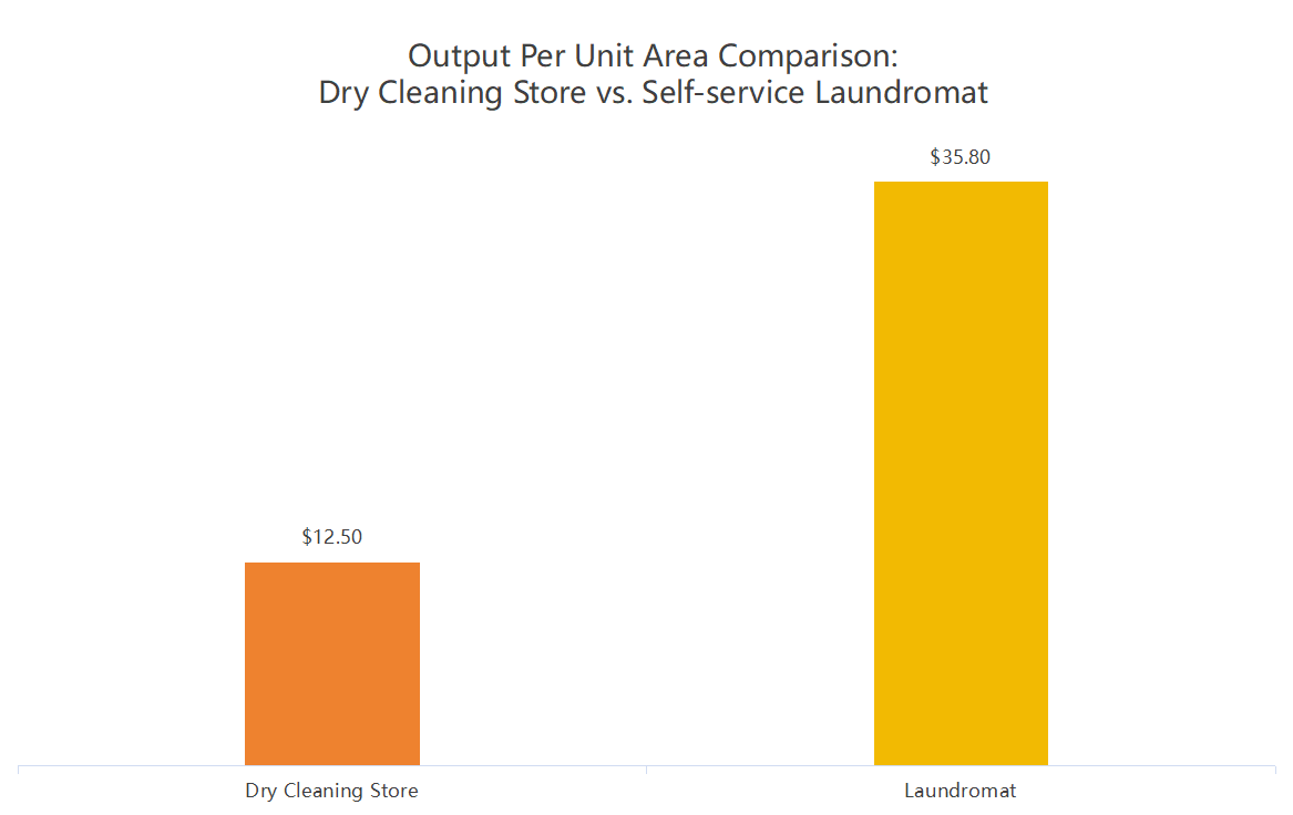 الخدمة الذاتية مغسلة : 35.8 دولارًا أمريكيًا للمتر المربع (10.750 دولارًا أمريكيًا إيرادات شهرية لمتجر مساحته 30 مترًا مربعًا)