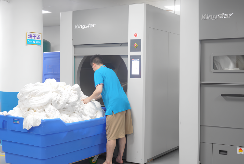 Kingstar مجفف صناعي تحتوي على تقنية التحكم في الرطوبة للتحكم الذكي في وقت التجفيف ومحتوى الرطوبة في الكتان. يمكن أن يؤدي ذلك إلى تجنب تلف الملابس الناتج عن التجفيف المفرط وتقليل استهلاك الطاقة في عملية التجفيف. يمكن لمجفف 100 كجم تحميل 100 كجم من المناشف مرة واحدة. إذا كان ضغط البخار أكثر من 5 كجم، فسيتم تجفيف المناشف خلال 40 دقيقة، وهو أمر فعال وسريع للغاية.